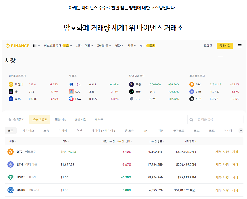 ▶ 바이낸스 수수료 10% (선물.마진거래) 할인받고 가입하기 주소 :